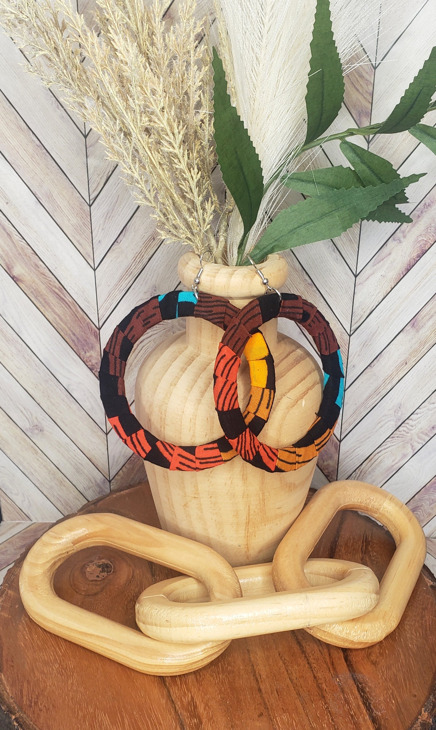 This fabric is transformed into statement hoop earrings, bowtie and button earring sets, and frame + hoop combinations—each piece handcrafted to serve as more than an accessory. These are declarations.